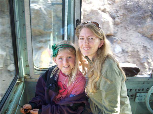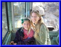 Cab riders Gracie and her mother Dawn enjoy the ride in #7285