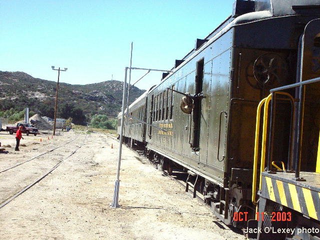 On October 11th and 12th we hitched RPO #74 to our Miller Creek train to show our visitors how the mail was carried and sorted in this country for over 100 years. Before each of the trips to Miller Creek we demonstrated several times at the Campo Depot how the mail hook on the RPO was used to catch the mailbag from the mail crane. Life member #1, and former RPO clerk, Herb Kehr performed these demonstrations flawlessly. He also instructed two other museum members the technique of catching the mail. Thanks for the demonstrations, Herb!