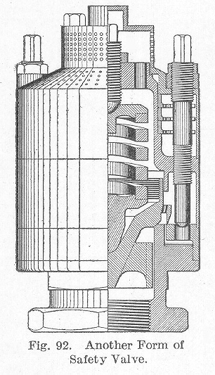 Another form of safety valve which is being largely used is that shown in Fig. 92. The principle of its operation is the same as that just described. It is said to be very quiet and yet gives effective relief. It is being adopted by several railroads.