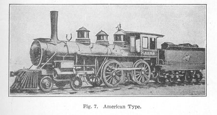 The American type locomotive, illustrated in Fig. 7, is typical of the small sized engines of this construction which are now being rapidly replaced by other types. For a period of nearly fifty years ending about 1895, the American type locomotive was more commonly used for passenger service than any other type.A comparison of things with reference to size, weight, and color impresses their relative characteristics upon the mind. For this reason, the illustrations of the Tornado and the Mallet compound locomotives are given in Fig. 8 and Fig. 9, respectively, the former being an early development, and the latter the most recent heavy freight locomotive.