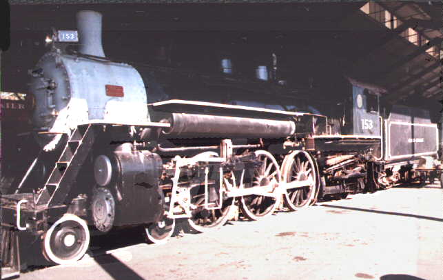 I grab a stick of grease, and walk around the engine greasing the main rod bearings. As the chore is completed, I look at my watch, and realize it is nearing 10 AM. Back in the cab, the steam gauge is approaching 100 pounds, nearly enough to move the engine if need be, but there's nearly an hour left. I adjust the burner, blower, and firing valve, and climb up to the engineer's seatbox. I open the steam feed to the hydrostatic lubricator, and adjust the flow to the air compressors' feed line. I reach up to the steam turret, and open the feed valve for the air compressors. This action is rewarded by an immediate chorus of thumping and hissing as the air compressors start their pistons and begin driving air into the main reservoir for the brakes and power reverse. I check the water glass, note that it is back down to a half glass, and start the injector on the engineer's side.