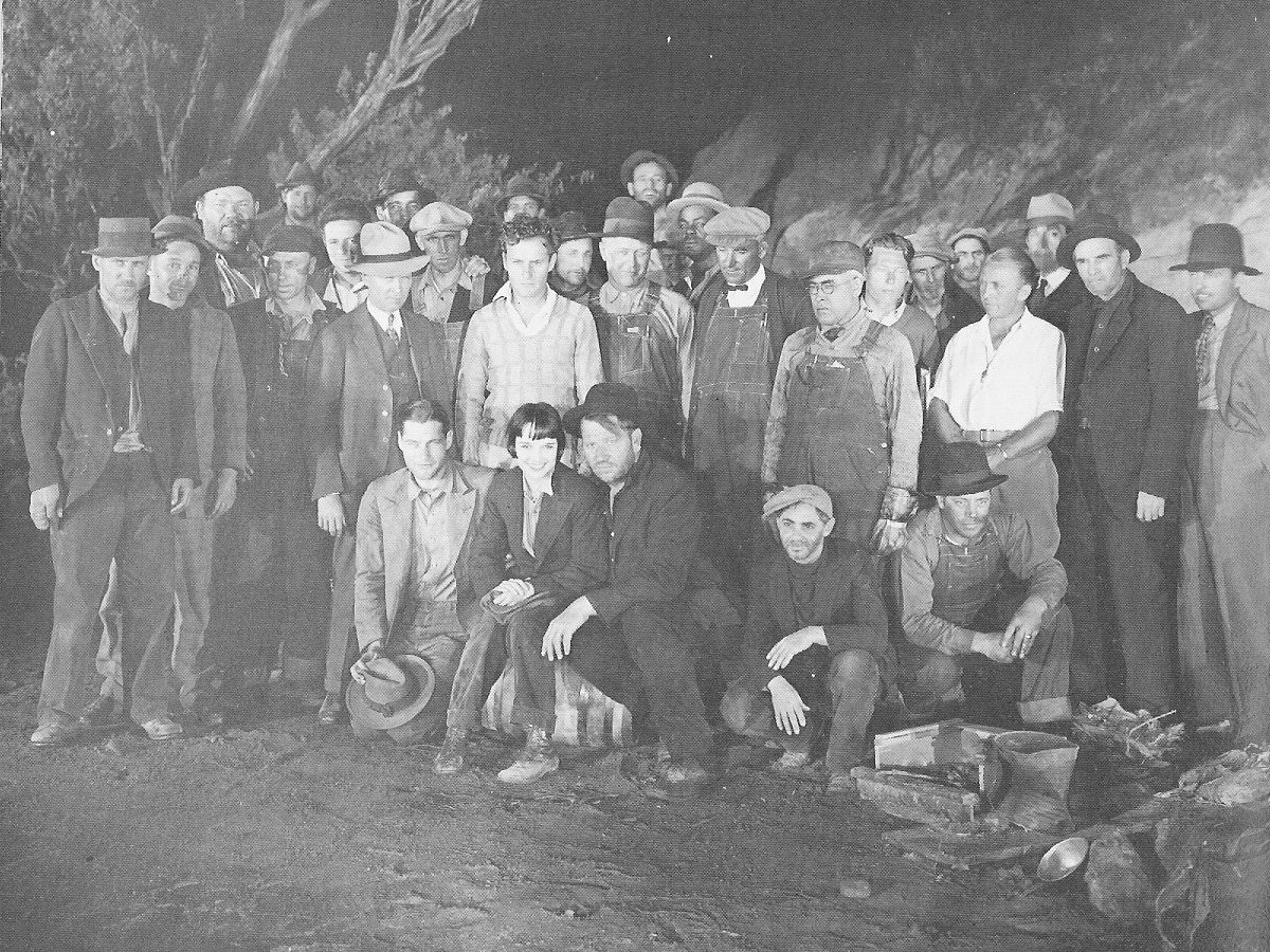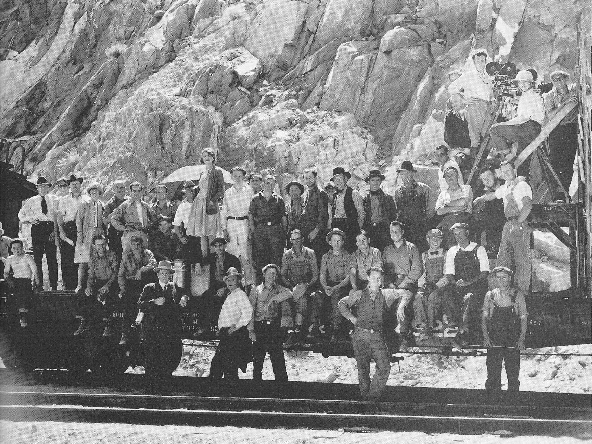 The cast: Louise Brooks with Richard Arlen (L) and Wallace Beery (R). SD&A trainman and hobos are also present.