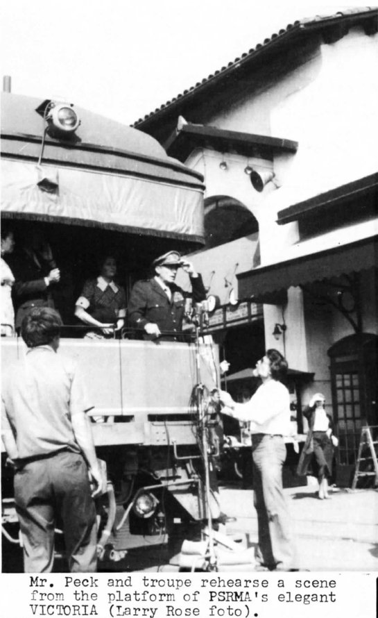 'MacARTHUR' COMES TO SAN DIEGO by Larry Rose & Dick Pennick "General MacArthur" returned last month, not to the Philippines as he promised in 1942, but to the Santa Fe/ Amtrak depot in San Diego, and PSRMA was there in grand style. Universal Studios (MCA Universal) film crews set up in front of the depot to shoot a segment of their upcoming World War II epic about the exploits of General Douglas MacArthur. Three restored items of PSRMA rolling stock, rented by the studio, got starring roles. Read more in Report # 131 |