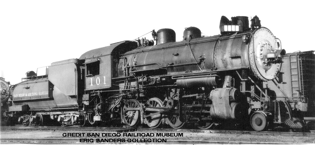 Leased to Southern Pacific and renumbered 2837 in 1918. Returned to SD&A and renumbered 101 in 1919. Original weight was 216500 lbs, 193000 lbs on the drivers, and 200 lbs boiler pressure. Scrapped January 14, 1953.