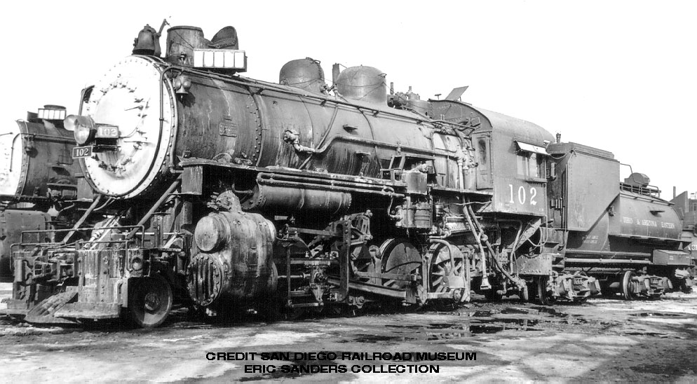 Leased to Southern Pacific and renumbered 2838 in 1918. Returned to SD&A and renumbered 102 in 1919. Scrapped August 14, 1953.