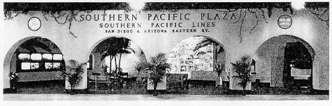 Southern Pacific's Plaza at the San Diego Exposition where thousands of daily visitors learn of the company's travel attractions.