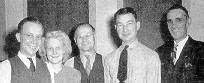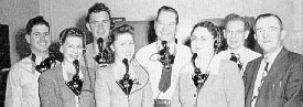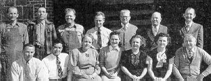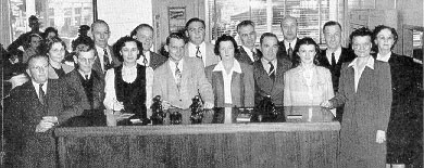 SERVICE BUREAU staff, left, includes, l to r: Robert Gremitt, Ruth Hall, Harry Schrader, Mildred Bushnell, Vito Siskos, Ruby Simponis, John Morell, F. W. Piepenbrink, chief.