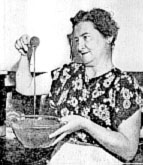 Mrs. William Vizner, one of this month's recipe winners, looks approvingly at her cake mixture. This was probably the dessert for her delicious prize-winning "Swiss Steak San Diego" recipe, printed on this page. Mrs. Vizner is wife of SD&AE engineer.