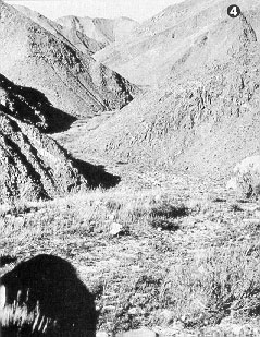 4. Typical of the rugged gorge country is this scene pictured through the window of an SP caboose.