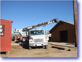 by Daisy WelchOn Tuesday March 17th 2009, Cid Carlson and Frank Schudar from C & M Crane Company arrived bright and early with a big crane and support truck to move some heavy things that we couldn't reach with our rail-crane. These fine gentlemen donated their time, expertise and equipment to help us out.