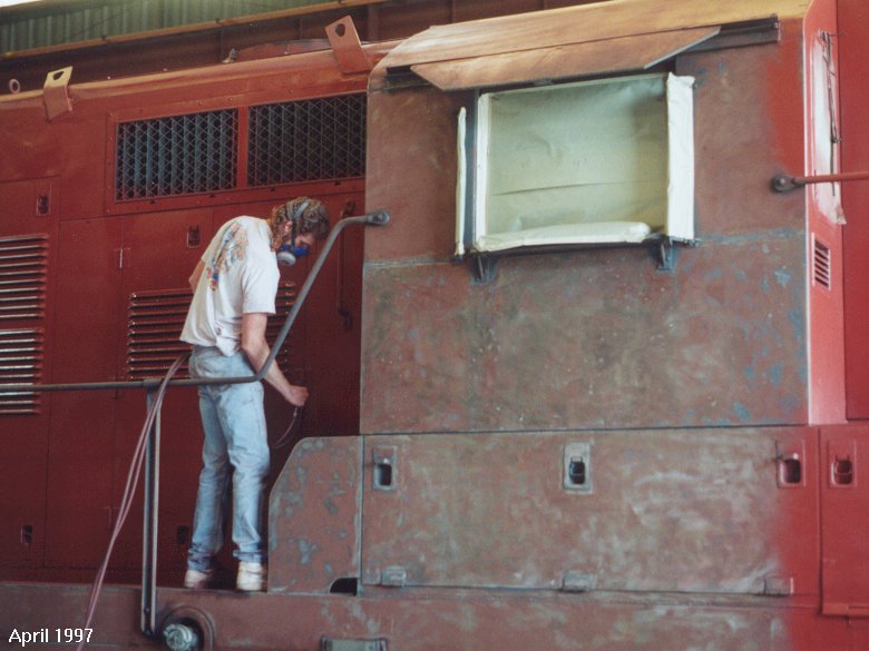sanding, priming again, then painting the locomotive.