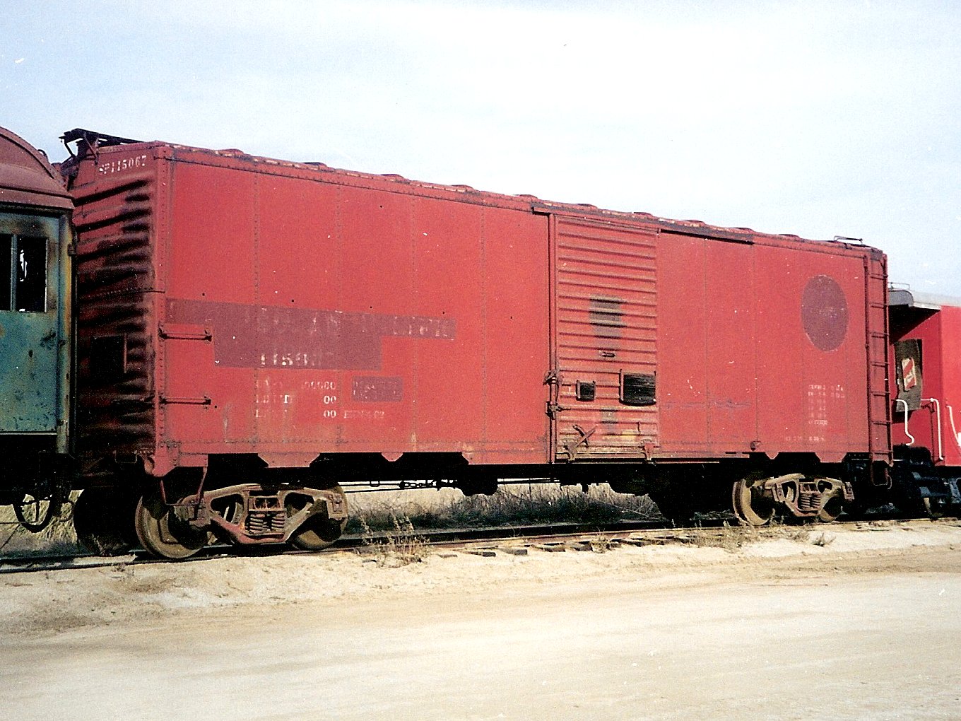 Sometime after that date, SP #115067 was transferred by the SP to its San Diego & Arizona Eastern subsidiary for Maintenance-of-Way use, and renumbered SDAE #1084-MW. When the Metropolitan Transit Development Board of San Diego County purchased the SD&AE from the Southern Pacific in November 1979, SDAE # 1084-MW was included in the purchase. For many years, the car was based in the SD&AE yard at Jacumba, CA, and was photographed there in June 1985. In 1990 it was brought to Campo to make room for construction equipment to be used in rebuilding two collapsed tunnels in nearby Carrizo gorge.