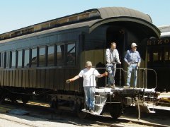 RS&S #3 (listed as D&R #13) and D&R #14 were traded in April 1976 to the PSRMA, trucked to Poway, CA June 7-8, and displayed for seven years at Old Poway Village, where roof and other repairs were made. Trucked to Campo February 10, 1983 and placed in the carbarn on the 12th, they were the first museum passenger cars there. It was finally identified as RS&S #3 in 1988.