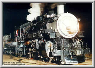 March 2nd, 1996. San Diego and Arizona Eastern locomotive engineer Leonard Salisbury leaned out the cab window of Southern Pacific 10-Wheeler 2353, ready to depart with a trainload of passengers. Nothing unusual; he'd done it before, many times, in this same locomotive, by the same little yellow depot here at Campo, California. Only thing was, last time had been over 45 years ago, when passenger service had been discontinued on the San Diego and Arizona Eastern Railroad. And the 2353 had not felt fire in her belly since 1957, when left by Southern Pacific to stand lonely vigil in the fair grounds of Imperial County.